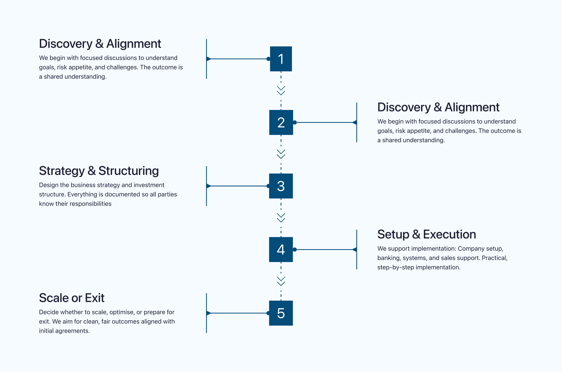 Our method gives both investors and business owners clarity on how we move from first conversation to execution.
